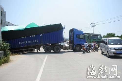 大货车堵住两个车道,路过的车辆只得搬开护栏,借道对面车道才能通过 东南网8月2日讯(海峡都市报记者 吴臻 关铭荣 实习生 钟真真 李居 华真 文/图) 昨日上午10时许,福州闽侯洪甘路厚屿村附近路段,排起了车流长队。一辆车牌号为闽A29939的挂车横在路面上,几乎将通往白沙方向的两个车道都占用了,车厢上站着几名工人,正将厢中的货物搬到边上。 昨日上午10时30分许,记者赶到现场,此时这部挂车依旧横在洪甘路上,从福州往白沙方向排起长队。记者注意到,挂车的车身部分停在路边的斜坡上,车身前部横在马路上。此时车厢上站着几名工人,他们正在将货物搬到旁边的拖拉机上。 “哪有这样停车卸货的,把别人的路都堵了。”开车途经此处的潘先生说,他也是一名货车司机,上午10时许,他开车途经此处时,就看到这部挂车来回倒车,后来就直接横在路面上了,几乎把路面堵死,途经此处的车辆,不得不借道通行。 挂车司机说,车上载着几吨货,本想将车倒进路边卸货点,但卸货点的大门太小了。“我是实在没办法了,只能这样卸货了。”司机说,他也叫了好几个工人,加快卸货的速度,准备卸完货马上将车开离。 |