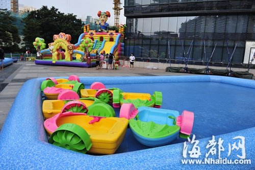 福州一商场前,充气水池里有不少杂物和黑点 东南网8月15日讯(海峡都市报记者 刘世泉 陈贽超 张超晖 文/图 ) 高高耸起的充气城堡、能够“水上走”的充气水球……近段时间来,福州许多大型卖场前的广场上,都出现大型儿童充气玩具,成为孩子们的最爱。 近年来,因充气玩具的安全缺陷导致儿童受伤的情况,各地时有发生。昨日,记者走访福州两个广场,发现儿童充气游乐园的卫生以及安全存在隐患。而记者在采访了工商、质监、卫生等多个部门后发现,目前此类户外游乐设施存在监管空白。 水上漂浮杂物 昨日下午,记者在仓山浦上大道一城市综合体看到,广场上摆着两个充气水池,不少儿童在水池中戏耍,却没有相关工作人员在场。记者看到,充气水池的水面漂浮着香烟盒、零食袋等杂物。 在五四路的一家百货门前广场上的充气乐园,记者询问了现场工作人员一些关于充气设施的安全卫生问题。“水我们不会消毒,一般是直接换掉。”工作人员说,水是从附近取来的,不存在卫生隐患。但记者却在充气水池里看到大量黑点,可能是换水时污垢没有清洗干净。 此外,在现场,记者也没有看到游乐设施的安全告示和使用说明。工作人员说,每个游乐设施有一个安全人员看守,以保证孩子的安全。而此类游乐设施显然很吸引孩子们。此前记者就曾看到,在充气城堡中有十多个孩子在玩耍,一个安全员能否应付得过来? |