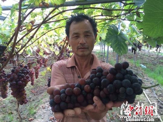 叶宇楠 摄 中新网罗源8月26日电 (叶宇楠洪映)8月,福建省罗源县西兰乡甘厝村果棚里的提子迎来了丰收的季节。望着自家果园里一串串饱满丰盈、紫得发黑的黑提,该村果农陈双贵却高兴不起来,焦急地来回走动,不时夹着一声无奈的叹息。 “联系了几家批发商都推脱路程远不愿意上门来收,这么好的提子却只能眼睁睁看着干瘪、烂掉,太心疼了。”陈双贵满脸忧愁地说道。与此同时,随着持续的高温天气下,果园内提子干巴、掉落情况颇为严重。 26日,记者来到距离罗源县城20多公里的甘厝村。刚步入陈双贵的果园,一眼望不到边的提子园让人震惊,紫黑的提子挂满枝头压弯了树枝。陈双贵告诉记者目前他的果园里已经成熟的提子有7万多斤。然而在这丰收的季节里,果园内却看不到农民采摘的身影。与此同时,果园的地上已有不少提子果熟蒂落掉在地上。 “我们的提子品种是黑提,不但无籽,甜份和水份还很足。”陈双贵摘下一串给记者品尝。 陈双贵告诉记者,两年前得知甘厝村的水质和土壤适合提子生长,他和朋友一拍即合,共同投资70多万,承包下75亩的果园,开始种植提子。由于经验缺乏,头两年收成一直不大好。然而陈双贵顶住压力,总结出提子的生长规律和种植窍门,终于在今年迎来了大丰收。原本想着能卖个好价钱,弥补之前的亏损,可没想到竟乏人问津。 “谁能料到好年景会遇上没销路,唉!”陈双贵对“红提葡萄”今年难以售出表示茫然。 “目前我们正在多方联系销路,进行宣传,希望不再看到果实烂在园子里。”陈双贵说道。 |