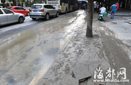 福州华林路地下挖地铁路面冒泥浆 造成交通拥堵