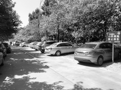 福州儿童公园门口绿化带成停车场 有人违规收费