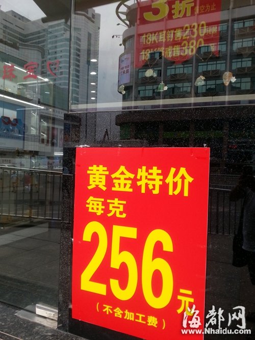 昨日,榕有专卖店金饰报价低至256元/克 东南网10月9日讯(海峡都市报记者 欧阳进权 文/图) 国庆期间,国际金价一度跌破每盎司1200美元,这是去年6月底以来首次跌破1200美元的关键支撑位置。记者昨日获悉,跌到1200美元,意味着金价跌到了采金成本线。昨日,福建本地的原料金价跌到了240元/克,现在买1斤金条只要12.5万元(含每克10元的手续费),但是市场上买黄金的人并不多。 金饰报价一家更比一家低 昨天20:30,纽约黄金报价为1218美元/盎司,国庆期间更是一度跌到了1192.90美元,创下56个月来新低。根据高赛尔金银研究中心提供给本报的数据,黄金2013年的开采成本价在1100至1200美元/盎司。这意味着,目前金价已逼近成本线。 香港彩福珠宝负责人黄先生说,下半年以来国际局势相对稳定,美国经济左右着金价,最新公布的美国失业率降到了六年来低点,一下子打压了黄金等大宗商品的价格。 因此,尽管“金九银十”已经到来,但今年福州金价不涨反跌,其中首饰报价更是一家比一家低。记者走访市场看到,一个月前福州百货黄金首饰报价还在330元/克左右(不含加工费,下同),昨日只剩305元/克,专卖店报价更低,有的报价258元/克,还有的报价低至256元/克。 |