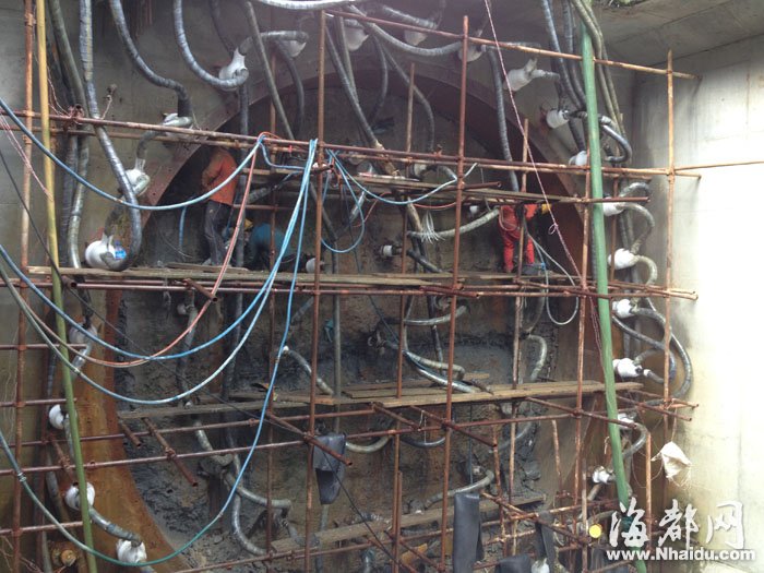 冷盐水通过一根根打入土层的管道进入土层,不断循环,把土层中的热量带出来,土层慢慢被冻住 东南网10月13日讯(海峡都市报记者 阙文龙 通讯员 谢丹婷文/图)三国时期,曹操凭借用沙土冻出来的一座“冰城”,一举击溃马超。而在福州地铁施工过程中,近日用到了类似招数:面对可能崩塌的碎石和积土层,施工人员将其冰冻到-10℃以下,让盾构机顺利掘进,避免地下水和崩塌等安全隐患。 记者昨日从福州市地铁公司获悉,地铁1号线秀山站至罗汉山站近日双线贯通。在该区间,施工人员首次采用冷冻法加固盾构机接收井的洞门,这是在福州特有的富含水的碎卵砾石和残积土层中,首个成功实施冷冻法施工的地铁工地。 首造“冻门”,方便盾构机掘进 秀山站至罗汉山站为何要用冷冻法施工? 昨日,施工方中铁四局集团相关人士说,秀山站至罗汉山站线路长630米,这两个车站之间的盾构机接收井所处位置,希尔顿酒店侵占了地铁征地红线,又距离解放溪约50米,接收井所处的地面不具备加固条件,所以施工方将隧道端头井洞门加固,由传统的旋喷桩改为冷冻法加固,为迎接盾构机开挖隧道出洞时,打造一扇人工“冻门”。 据介绍,“冷冻法”是一种通过冷冻将天然岩土变成冻土的施工方法,可增加土层强度和稳定性,隔绝地下水,杜绝施工过程中崩塌等安全隐患。 |
