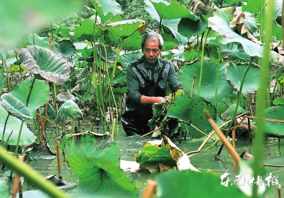 老吴每天都要划着船,在湖面上反复地检查是否有残留垃圾 老吴定期就要下水修剪残败的荷叶 今年55岁的吴钦羽,是茶亭公园里的一名“知名”园丁。入行已36年,单在这里就渡过了10多年的光阴。每天上午7点整,他都会准时从上渡家里骑上半个多小时的电动车,来到福州茶亭公园忙碌其一天的工作。 “他可是我们这里的老宝贝。”这是茶亭公园管理员们对吴钦羽一致的看法,“他对园内绿化的呵护就像对待孩子一样细心,修剪花木、播种施肥、清理湖面……” 昨日上午8时许,在茶亭公园的湖边,老吴解开拴在岸边的小舟,小心翼翼地站了上去,单手握着竹竿,轻轻一划,小舟便开始向湖中心滑动,向左或向右,全在他的掌控之中;另一只手中拿着长长的漏网,分毫不差地瞄准湖面上的垃圾,一把捞上。一天下来,在这片湖中他要花上大量时间,为的是让公园内的湖面干净一些,这是老吴每天必做的工作之一。 结束了垃圾清理的工作之后,老吴又马不停蹄地开始了另一项工作。11月份,恰逢榕城秋意渐浓的时节,公园内最具特色的冬荷,也开始略显枯残。为了让一些绿荷叶更加吸引游客,他就需要下到水中,踩在黏糊糊的淤泥上,进行清除“残荷”。 |