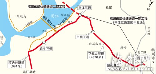 园中互通效果图 东南网11月19日讯(海峡都市报记者 阙文龙 张超晖 肖春道 文/图) 昨日,本报A01版刊发《新福州走向滨海琅岐成“桥头堡”》一文后,引起市民广泛关注。许多读者致电本报95060新闻热线反映,要开发建设琅岐岛,早日打通福州东部快速通道至关重要,沿线政府、建设单位都应按照“马上就办”的要求,加快征迁,抓紧施工,全力推进这条大动脉的建设。目前,福州东部快速通道建设进展如何?遇到哪些难题?昨日,记者就市民关注的话题进行了采访。 林地、土地报批 全面展开 福州东部快速通道是“104国道连江至晋安段改线工程”的一段。昨日,业主单位——福州市交建集团“104国道连江至晋安段改线工程”建设指挥部总指挥陈永锋介绍,该项目的“工可报告”及初步设计文件均已获批,项目林地、土地报批工作已全面展开,施工单位已进场进行隧道开挖前的各项准备工作。 据介绍,“104国道连江至晋安段改线工程”起于现104国道的琯头岭隧道连江侧,由北向南沿沈海高速公路平行布设,顺接已开工建设的琅岐闽江大桥接线,经长柄、盛美、象洋、大浦、西边后,路线转由东向西,跨沈海高速公路与温福铁路,经康坂、前洋、花瓶山至南洋,下穿鼓岭后终于三环路,双向6车道,全长32.967公里。 |