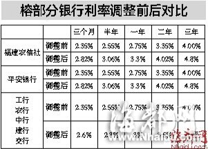 榕银行全线上调存款利率上限 国有银行上调幅度一致
