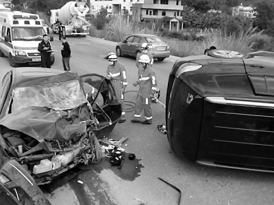 消防官兵在车祸现场抢救受伤人员 东南快报讯(记者陈腾健 李欢腾 吕诚文/图 通讯员 阮旭宁)昨日上午9点30分许,在福州市连江县江滨路长汀村附近路段,一辆黑色商务车与一辆黑色小轿车迎面相撞,事故造成两名司机当场身亡,商务车上其余3名女性轻微受伤。由于该路段较窄,事故发生后引起路面出现短暂的交通堵塞。 昨日上午,东南快报记者赶到现场后看到,两辆事故车辆受损严重,小车车头部分已经“面目全非”,整个车头凹陷进去,挡风玻璃也已碎裂,左前轮被撞瘪,驾驶室外留着一片血迹。反观商务车,更是“惨不忍睹”,由于车身比较高,在车头发生相撞的同时,商务车直接被顶翻,侧“躺”在路面上。车头引擎盖被直接掀起,保险杠外壳直接碎掉,挡风玻璃变成碎片,散落在路面上。由于两辆车车头损坏严重,路面掉落的车灯,散落的外壳碎片,已经分不出属于哪辆车。 “当时商务车正在超车,并撞上小车。”据现场一位目击者介绍,当时辆车相撞时,发出剧烈的撞击声,商务车被小车顶翻,小车司机则被卡在驾驶室内。另外,商务车上除司机之外,还有另外三名女性。事故发生后,三名女性由于伤势较轻,在其朋友到达现场后被接走,离开了现场。 连江县消防大队凤城中队丁队长告诉东南快报记者,昨天上午十时许,他们接到报警电话后迅速赶到车祸现场,发现交警已经在处理事故现场,随后医护人员也赶来救治受伤的商务车司机。 由于该路段为双向两车道,事故发生后将整个路面占据大半,只留下一个车道可以通行,因此导致过往车辆排起了长龙。 “我们得知还有一名司机被困在黑色小轿车车内,便用液压剪将车门撬开,随后消防队员进入车内,将被困司机慢慢抬出来。”丁队长表示,这名司机被抬出来后,医生立即对其进行抢救,但是已经没有了生命迹象。 随后消防队员又进入黑色商务车内检查,确认没有人员被困后,便离开了现场。 此外,东南快报记者从连江县医院了解到,医护人员赶到现场后,立刻对两名司机的伤势进行查看并实施急救。但不幸的是两名司机,因伤势过重,最终不治身亡。 昨天下午,事故中两名司机的家属到连江县公安局交管大队对死者身份进行确认。目前事故原因仍在进一步调查中。 |