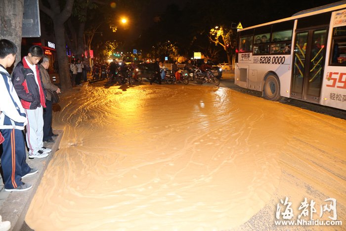 地下涌出的大量泡沫占了大半个路面