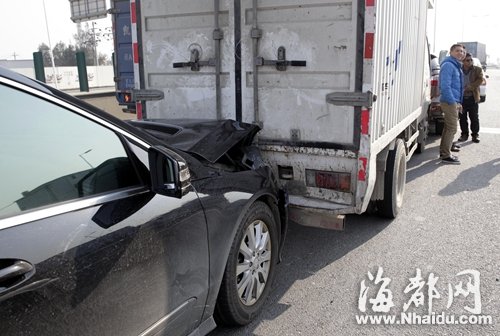 福州三环路前车突然变道 引发后面三车追尾(图)
