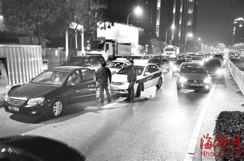 晚高峰琴亭桥“瘫痪”约半小时,闽AT9542和闽A1Y868两名司机“讨价还价”不快撤,最后,的士赔偿小车180元,双方才撤离