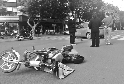 福州:十字路口电动车与小车相撞 骑手幸无大碍