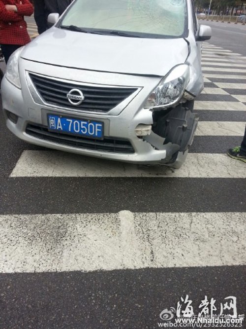 肇事车辆车头受损(网友图) 东南网3月24日讯(海峡都市报记者 陈文浩 吴臻) 伤者还躺在马路上,肇事车辆也停在路中,可司机却不见了,在场的所有人都以为司机逃逸时,肇事司机则躲在路口角落里等待民警到来。 昨日下午4时许,一条关于金山大道汇创名居门口发生交通肇事逃逸的微博引发网友关注。发帖网友说,骑车女子四十多岁,当时准备骑车过斑马线时被撞。小车撞人后,并没马上停下。受伤的女子当时还是清醒的,随后被送往医院救治。“我在现场待了半个多小时,始终没有见到肇事司机出现,现场的所有人都怀疑肇事司机逃逸了。” 记者来到现场时,一辆银白色的小轿车停在金山大道与麦浦路的交叉口,一名女子坐在车内。而在50米远左右的地方,一辆自行车被移到路边绿化带上,旁边就是路中间的过街斑马线。据目击者介绍,此处斑马线便是事发地点。 女子告诉记者,她刚拿驾照不久,第一次遇上这样的事心里很紧张,撞了人后也忘记刹车,稀里糊涂往前开了一段距离才停下。随后,她吓得赶紧下车,跑到一旁角落联系朋友。“我没有逃逸,我就一直在路口角落那里。”女司机介绍,她后来有去察看伤者的情况,看到伤者没有太严重的问题,她这才放下心头大石。 |