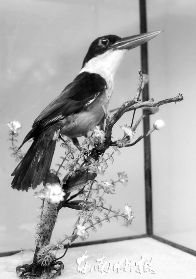 红嘴相思鸟标本 唐家技艺: 1923年所制标本至今完好,注重野外观察捕捉动物姿态 唐兆和介绍,唐家的标本制作技艺是比较独特的,和欧美、日本、还有中国北方很多的制作技艺不同,他们采用的多是“假体式”——先把动物的身体假体做好,再穿上毛皮。而唐家采用的是填充式,只以铁丝制成骨架,再用棉花等物填充,制成不同形态的动物,两种方法各有千秋,一种适合大型猛兽,一种则适合小型尤其是微小的动物。 在唐兆和看来,制作标本就跟做衣服一样,每一步都很关键,唐家人都经过几十年的历练,技艺很熟练,讲究的关键是“精”。 “就拿鸽子、小老鹰这样比较小的鸟类来说,初步制作很快,一个上午可以做两只。”唐兆和介绍,这指的只是剥皮、填装到缝合的步骤,缝合好后还需要几天时间晾干,才能再进行姿态和外貌的整形。比较大型的动物,标本制作时间也要相应延长。 “精”到底在哪儿呢?唐兆和说,剥皮时一定要将肉和脂肪剔除干净,包括嘴、鼻子、眼睛、脚爪等细微的地方,一点都不能留,否则很容易生虫,没多久就坏了。此外,还要保证皮毛完好无损,防腐工序及养护也要到位,这样做出来的标本,保存100年都没问题。 “像在师大动物标本馆里,保存最久的是那只1923年的北灰鹟标本,至今仍保存完好,这就见证了唐家独特的技术。”说起祖辈的成果,唐兆和颇为自豪。 “其实,现在已经有很多标本制造厂都在制作标本,技术上差别不大,不过唐家做出来的标本却总是更形象生动。”唐兆和说,这或许归根于唐家几代人一直注重的野外观察。 “到动物的栖息地去,去观察它们的生活习性、捕食、飞行。”唐家人制作标本前都会仔细观察这种动物在野外的习性和姿态,尽量保存它在自然中的模样,有时候只是一点点神态的区别。