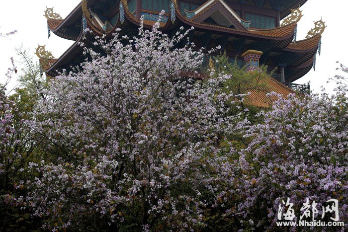 道路两边整排的羊蹄甲,叶如羊蹄,花如仙子,落英缤纷中,西禅寺的飞檐翘角隐现。每年3月到5月,福州工业路就成了一道独特的风景。