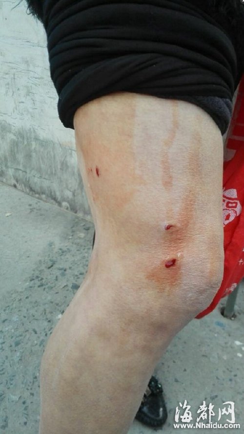 陈阿姨腿上的伤口 东南网4月16日讯(海峡都市报记者 陈超/文 毛朝青/图) 关注理由前日傍晚6时左右,福州鼓西路,一处工地大门打开时,蹿出3只恶犬,将一名过路的六旬阿姨咬伤。见此情景,受伤阿姨的儿子急忙驱赶3只恶犬,却也险些被狗咬。 这处工地位于福州市第十八中学校园内,承建方为福建十建建设有限公司。现场工地负责人杨某昨日称,目前正在和伤者家属协商赔偿事宜。 工地开门瞬间 三恶犬冲出直扑路人 昨日,市民林小姐将自己的婆婆被恶犬咬伤的事发到微博上,晒出的图片显示,伤者右腿上有4个被狗咬出的血洞,十分吓人。 “当时工地门一开,3条狗就扑过来咬我,真是吓死我了。”在事发工地门口,陈阿姨忆起当时的情景,心有余悸。她说,当时自己抱着一只小贵宾狗,和儿子熊先生一起步行经过鼓西路。 陈阿姨说,就在工地开门瞬间,3只恶犬从大门里冲出来,直接扑向她,并将她的右腿咬伤。陈阿姨急忙向后躲避,可恶犬再次向陈阿姨扑来。 视频监控录像显示,前日17时55分19秒,陈阿姨被工地的恶犬咬伤。在17时55分24秒,已经被咬伤的陈阿姨向后躲避,可两只恶犬再次向陈阿姨扑去。好在此时熊先生冲上去,用脚踢开恶犬,救下陈阿姨。 |
