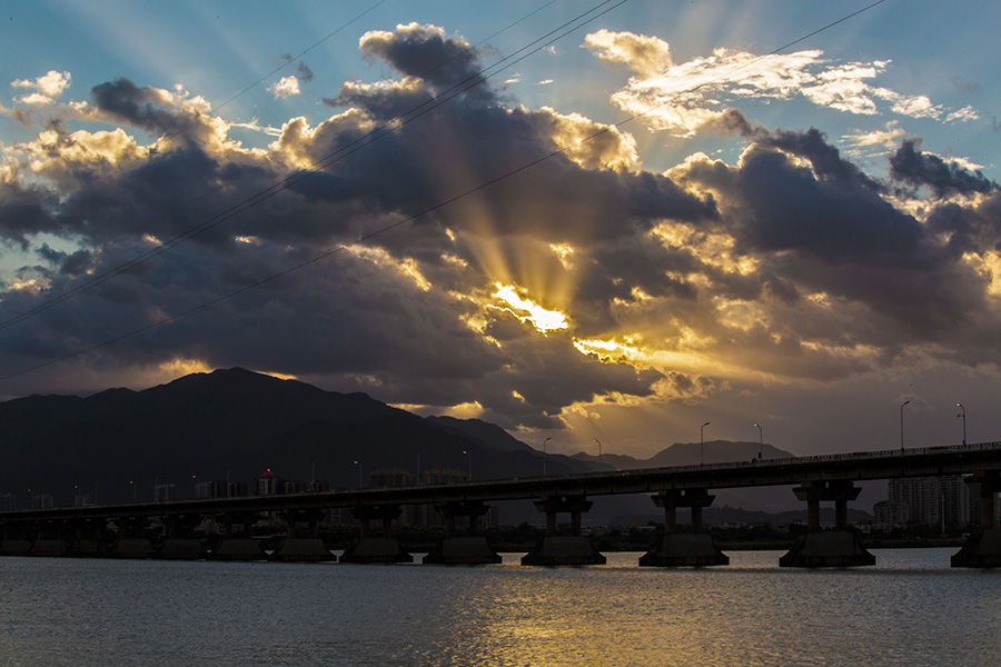 昨天(7日)傍晚,受今年第13号台风“苏迪罗”外围云系影响,福州市西面出现美丽的“耶稣光”。据专家解释,“耶稣光”即丁达尔效应的形成,是靠雾气或大气中的灰尘,当太阳照射下来投射在上面时,就可以明显看出光线的线条。这种为风景带来一种神圣的静谧感的光线,被称为“耶稣光”。(汤珺琳)