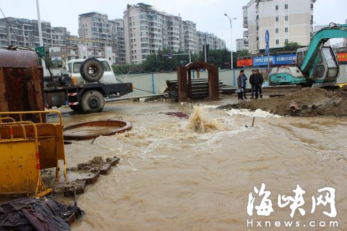 地铁工地水管爆裂 福州万户居民停水5小时(图)