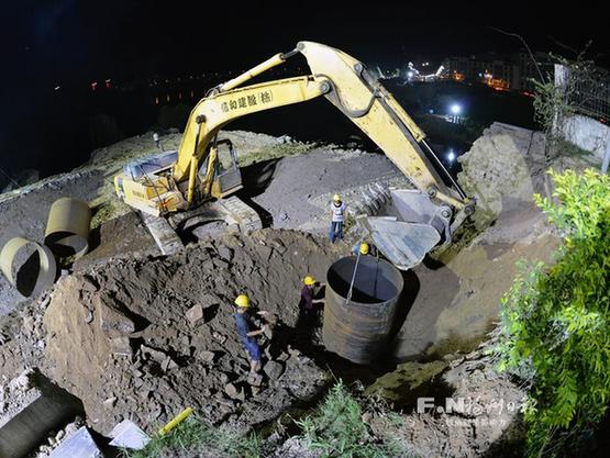 福州日报8月25日讯(记者 叶义斌 通讯员 吴广钟 摄影报道)23日晚,闽清溪口大桥工地灯火通明,施工人员正在安装钢护筒,为接下来的桥墩钻探做准备。同时,架设钢栈桥的工人也在水面上作业,向对岸延伸10多米。据施工方介绍,大桥爆破拆除后,各种机械陆续进场,加班加点作业。 |