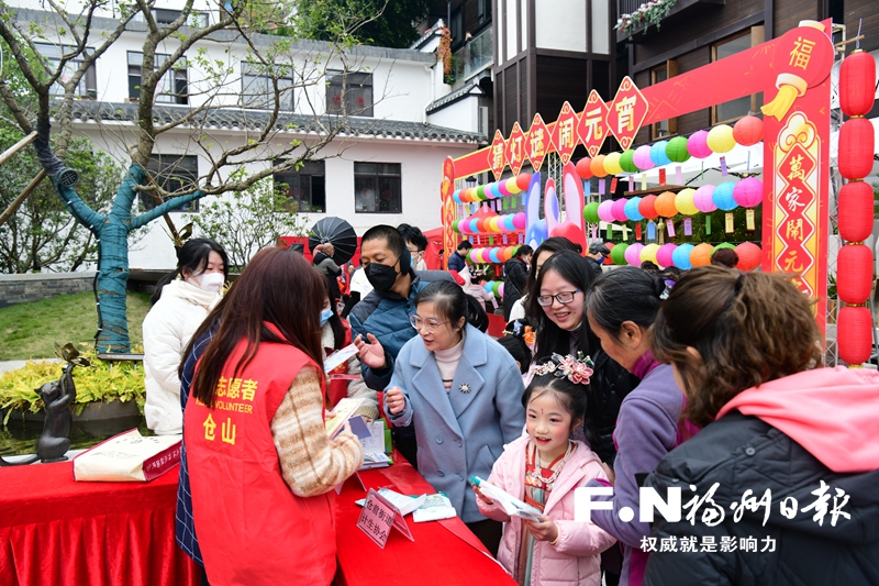 3日,2023年“我们的节日·元宵节”福州市主场仓山区专场暨“节日感党恩 共话新时代”主题活动,在烟台山安澜广场举办。现场喜庆热闹,精彩的表演,吸引了众多市民群众驻足欣赏,掌声不断。主办方还设置了猜灯谜活动,一批趣味十足的灯谜,引来不少观众竞猜,现场洋溢着浓郁的节日氛围。