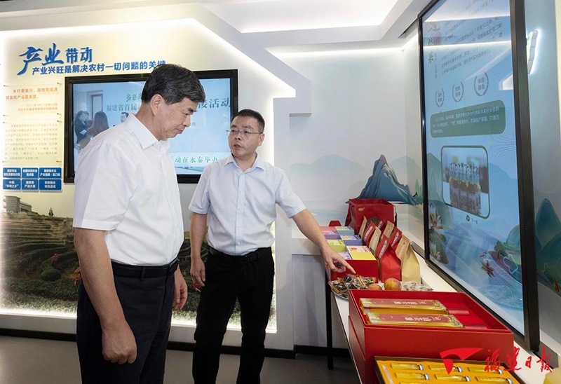 碧水绕青山,一溪润两岸。30多年前,时任福州市委书记的习近平同志到大樟溪畔的梧桐镇坵演村调研,提出“咬定青山不放松,造林种果下真功”,擘画了“山顶林戴帽、山中果缠腰、山下吨粮田”的发展蓝图。30多年来,坵演村坚持生态富民,不断探索创新,实现了山林绿、产业火、村民增收。周祖翼一行来到乡村振兴展示馆,一道重温习近平总书记的重要指示精神,了解当地推动乡村振兴的历程、成果、经验和展望,并实地察看了立体农业综合开发、发展乡村旅游等情况,与村里的干部群众、旅游项目负责人等交谈交流。周祖翼说,要贯彻落实党的二十届三中全会提出“坚持农业农村优先发展,完善乡村振兴投入机制”等要求,始终牢记嘱托,持之以恒推进植树造林,在培育优质品种、改良农机装备、农产品精深加工等方面探索更大突破,继续做好“土特产”文章,重视发挥本乡本土人才作用,因地制宜发展民宿露营、农业观光等农文旅经济业态,带领村民在共同富裕道路上迈出坚实步伐。在听取了永泰县农村产权交易流转平台建设情况介绍后,周祖翼强调,要持续建好建强农村基层党组织,充分发挥基层党组织战斗堡垒作用和党员先锋模范作用,鼓励基层探索,尊重群众首创,有力有效推进乡村全面振兴。