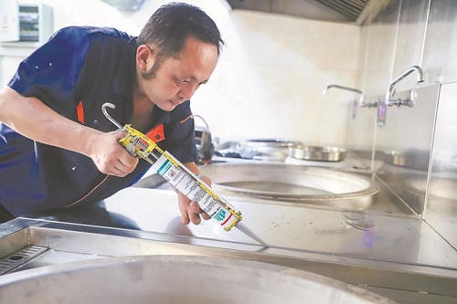 工人在学校厨房灶台处打胶,以防水防虫。 厨房外,各式设备等着“上岗”;餐厅内,新的餐桌虚席以待……8月26日,记者在福建省福州市琅岐中学教育集团(龙山校区)看到,该校的食堂升级改造已进入收尾阶段。福州市教育局提供的数字显示,今年暑假期间,福州市共有116所学校启动食堂修缮改造,共投入资金2412.47万元,提升师生就餐环境。 “新学期,我校将有500多名高一新生在食堂就餐。为了保证学生开学顺利用上新食堂,我们最近都在加班。”琅岐中学校长梁礼华介绍说,食堂改造项目包括后厨设备更换、餐厅修缮扩大、增加空调和风扇设施、购买餐桌椅及餐具、监控系统改造等。位于原餐厅二楼的功能厅也改为学生用餐厅,总面积扩大至1000平方米。 不仅如此,改造后的食堂后厨动线更规范了。食材等货物配送到门口,一路经储藏间、冷藏间、清洗区、加工区,经烹煮后再送到热菜区,后厨区与就餐区完全隔开。厨房里的商用电磁炉、冰箱均更换到位。此外,新食堂所有通往后厨的门全部加装了“挡鼠板”,每个房间都配备了相应数量的灭蝇灯。 福州华侨中学位于城区中心,新学期将有1000多名师生在校就餐。相关负责人介绍说,暑假期间该校根据食品安全调查中发现的问题进行了装修改造。比如,原有的吊顶部分经常发现霉斑,墙面容易发黑,改造后启用了铝吊顶以及瓷砖墙面;又如,新设置了独立的主、副食品库,同时增设非食品库保证食品安全;此外还增设了打包分餐间、教职工专用窗口和独立的餐具回收间,缓解用餐高峰期的拥堵。 福州市教育局相关负责人说,校园食品安全管理责任重大,要花大力气做好校园食堂升级改造工作,特别针对农村地区学校的食堂场所设施设备进行改造升级,让师生们在校放心用餐。 日前,福州市教育局、福州市市场监督管理局和福州市卫生健康委员会还联合印发《福州市中小学食堂及校外供餐管理办法(试行)》,进一步保障学生在校集中用餐的食品安全与营养健康。 (记者 林密/文 姚兴榕/图) |