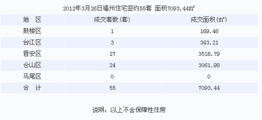 2012年3月26日福州住宅签约55套 共7093.44㎡