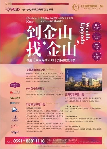 红星国际广场,创享高尚城市生活,福建百货巨头东百集团领衔进驻,市级新商圈大器已成。福州新格局,商圈新高度,金山在沸腾!玫瑰天街60-200㎡独立街铺全球VIP预约中!