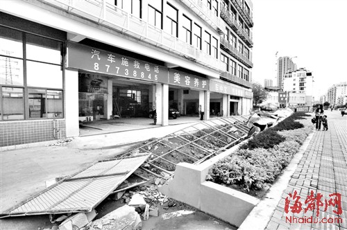 - 2010-08-05奶茶店圈地围栅栏 修车店占用人行道妨碍交通(图)