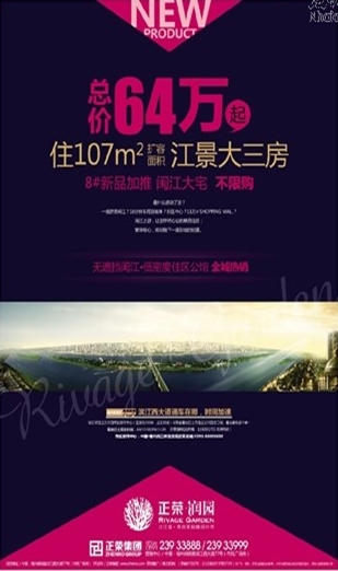 正荣润园,总价64万起,住107㎡扩容面积,江景大三房,8#新品加推闽江大宅不限购。无遮挡闽江,低密度住区公馆全城热销。