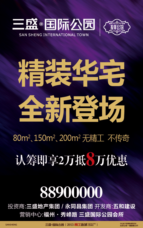 打造与时代同步的千亩国际大盘三盛国际公园,成就超越现代国际人居梦想的至高姿态。TOWN生活中国范本,福州首席大盘影响城市格局,1300亩仁文社区坐享醇熟生活,立体交通,构筑城市未来恢弘蓝图,市中心臻罕生态圈畅享绿色人居,低碳社区,创领国际先锋居住理念。