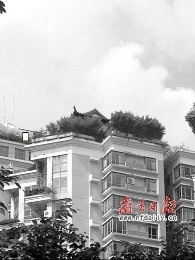 “深圳也有最牛屋顶违建”?有网友爆料称,南山美加广场有一座庙宇状建筑(见上图)。当地执法队称已进行多次调查,但因为户主不配合,不确定户主身份,也不确定是否违建。