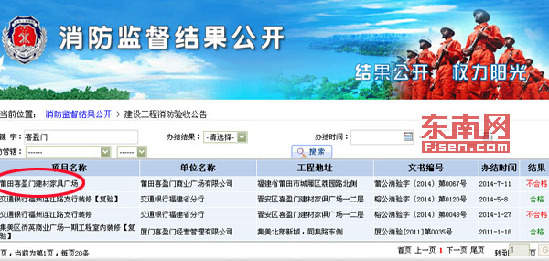 莆田喜盈门建材家具广场的消防验收结果确为“不合格”