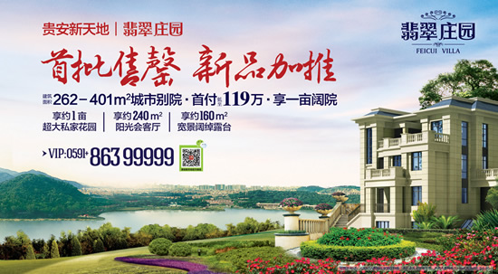 了解项目更多资料: 您可拨打电话:0591-86399999 项目地址:中国·福州北贵安新天地休闲旅游度假区 翡翠庄园,作为贵安新天地 于项目风景醉美的半山之上打造的全新升级超低密度城市山水温泉别院,凭借醉美的生态环境、超大的赠送面积、极具性价比的高端产品、最具完善的超级配套等,广受城市领袖与财富精英人士争藏,首批开盘即完美售罄,火热加推臻藏262-401㎡城市院墅,首付119万起,错过即绝版!