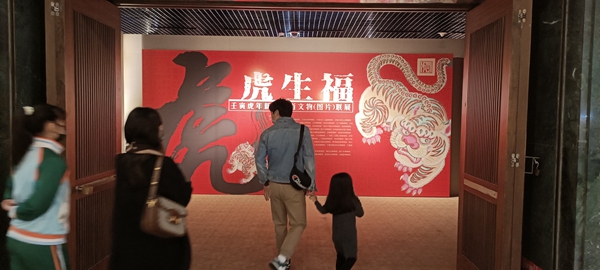 展馆入口 陈静摄 东南网1月27日讯(本网记者 陈静)为迎接2022中国农历虎年,中国文物报社联合福建博物院等各地近50家文博机构,众筹了数百幅与虎相关的文物、标本、艺术品图片,集结成生肖文物图片联展,于1月21日在福建博物院13号展厅展出。