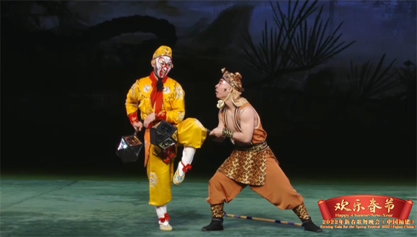 《茶香蝶舞》视频画面 晚会围绕“欢乐、团圆、祥和、奋进”主题,精选了歌舞、器乐、杂技、戏曲、木偶等艺术表演形式,献上了一场福虎迎春、喜气欢腾的精彩盛宴。大型舞蹈《福迎八方》拉开了晚会帷幕,优美旋律中融合中华武术元素,把观众带入新年喜庆氛围中;器乐《国风雅乐》用传统国乐方式呈现东方之美;南音交响《丝海南弦》将南音与交响、梨园戏和芭蕾舞巧妙交融,展现世界文化遗产的独特魅力;钢琴独奏《鼓浪屿之波》以音乐诠释两岸一家亲的深情;富有福建地域特色的舞蹈《古厝流芳》《茶香蝶舞》,让人沉醉在有福之地的粉墙黛瓦、青山绿水之间,突显了“清新福建”“全福游、有全福”独特标识;歌曲《冰雪之光》唱出逐梦冬奥的热盼心情;福建木偶《喜乐闹春》、戏曲《真假美猴王》片段、杂技《欢欣鼓舞》等精彩节目轮番上演,让观众大饱眼福;一曲恢弘大气的歌曲《命运与共》,晚会圆满落下帷幕。