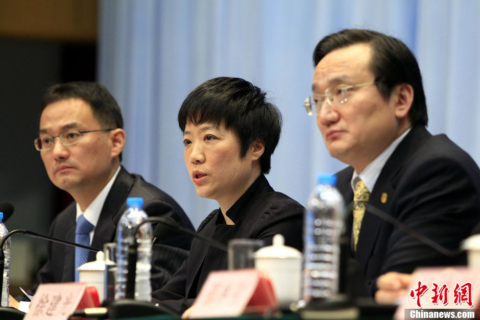 4月5日下午,上海举行发布会,通报上海H7N9禽流感疫情防控进一步部署情况。上海市疾控中心主任吴凡(中)介绍相关情况。中新社发 潘索菲摄
