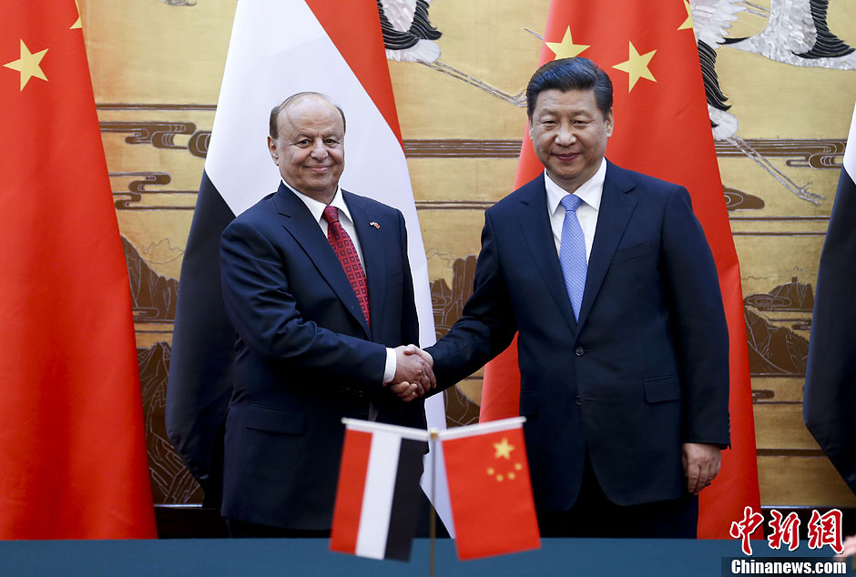 习近平与也门总统哈迪出席双边合作文件签字仪式