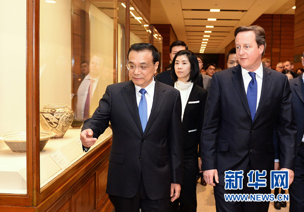 12月2日,中国国务院总理李克强陪同来华访问的英国首相卡梅伦参观国家博物馆。 新华社记者 刘建生摄