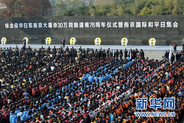 12月13日,南京举行国际和平集会悼念南京大屠杀30万同胞遇难76周年,各界人士参加集会。新华社记者孙参摄