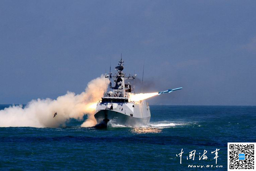 我海军056级新护582舰发射反舰导弹猛照