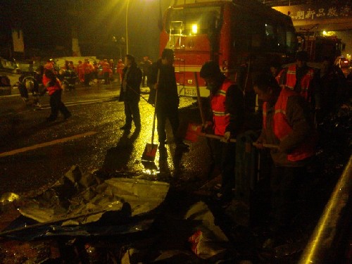 四川在线记者 周志敏 钟帆 27日凌晨6点30分报道6时25分,现场清理开始,环卫工人正对满地的碎玻璃和破碎的其他杂物进行清理。 四川在线记者 周志敏 钟帆 27日凌晨6点10分报道6时10分,数十名环卫工人和路灯管理局的工作人员拿着工具对事发现场外围进行清理。