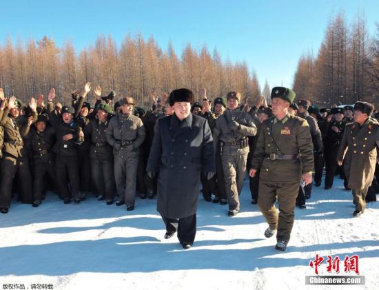 资料图:据朝中社2013年12月28日发布的照片显示,朝鲜最高领导人金正恩在平壤视察前线哨所。