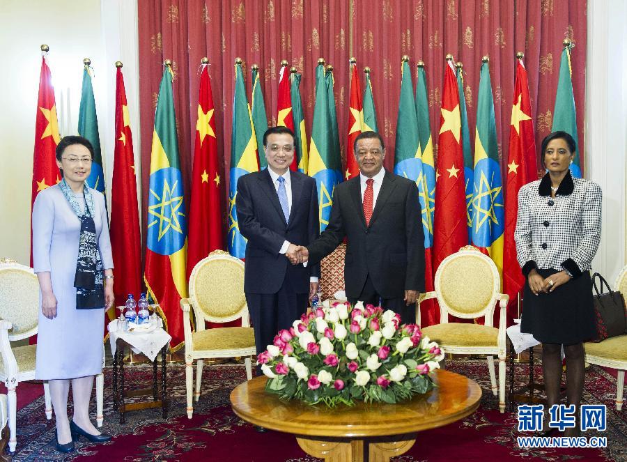 5月6日,中国国务院总理李克强在亚的斯亚贝巴国家宫会见埃塞俄比亚总统穆拉图。李克强总理夫人程虹、穆拉图总统夫人梅阿扎参加会见。新华社记者 王晔 摄 图片来源:新华网