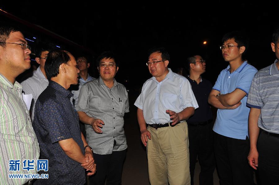 5月18日,中国政府工作组组长、外交部部长助理刘建超(中)在越南河静省永安港询问情况。在安排中国伤员乘中国政府包机回国后,中国政府跨部门工作组18日赶赴越南河静省中冶台塑钢厂项目基地,看望在暴力事件中受冲击的中国工人。 新华社记者章建华摄