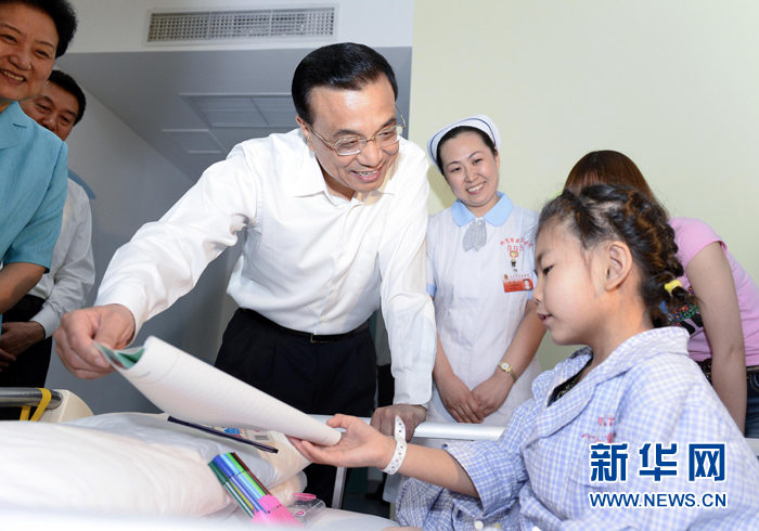 李克强帮孤残儿童做康复训练获赠彩笔画