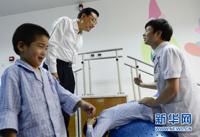 李克强帮孤残儿童做康复训练获赠彩笔画