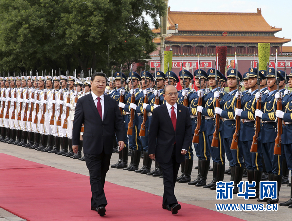 6月27日,国家主席习近平在北京人民大会堂同缅甸总统吴登盛举行会谈。会谈前,习近平在人民大会堂东门外广场为吴登盛举行欢迎仪式。 新华社记者 庞兴雷 摄 新华网北京6月27日电(记者刘华)国家主席习近平27日在人民大会堂同缅甸总统吴登盛举行会谈。两国元首一致同意,坚持中缅友好正确方向,深化全面战略合作,推动中缅关系继续健康稳定向前发展。 习近平表示,中缅山水相连、命运相系。中方希望缅甸实现长期稳定和发展,相信缅方会继续坚持走符合自身国情的发展道路。当前,国际和地区形势复杂多变,中缅两国都处在深化改革的重要阶段。双方应该从两国人民根本和长远利益出发,坚持中缅友好正确方向,坚持风雨同舟、互信互助传统,坚定推进全面战略合作,推动中缅关系继续健康稳定向前发展。中方坚定发展对缅友好,这一政策不会因一时一事而改变。 习近平强调,中缅双方要保持高层互访,加强战略沟通和协作,深化两国执政党交流,相互借鉴治党理政经验,加强防务、执法安全等领域合作,共同打击恐怖主义和跨境犯罪,维护地区安全稳定。中缅合作是互利共赢的,中方鼓励更多中国企业赴缅甸投资,希望双方共同营造良好环境,确保能矿、油气管道、水电开发等大合作项目安全顺利运营,实施好缅方农业示范中心和中方向缅方提供小额农业贷款等惠民项目。中方欢迎缅方参与21世纪海上丝绸之路建设,开展经济开发区、基础设施互联互通等合作,同时推进孟中印缅经济走廊建设。双方要加强全方位人文交流,尽早互设文化中心,扩大科教文卫等领域合作,夯实中缅友好的民意基础。缅甸今年担任东盟轮值主席国,中方积极支持缅方履行好主席国职责,愿同缅方一道推动中国-东盟关系深入发展,共同维护地区和平稳定。 吴登盛表示,中国是缅甸的好邻居、好朋友、好伙伴,建交64年来,两国传统“胞波”情谊日益加深。缅方感谢中国长期以来给予的支持和帮助,将继续在中方核心利益和重大关切问题上支持中方。缅方愿同中方传承传统友谊,推动缅中全面战略合作伙伴关系不断向前发展。我邀请并欢迎习近平主席在方便的时候访问缅甸,相信这将有力推动两国合作。缅方希望进一步提升双边贸易水平,欢迎中国企业投资,将积极落实好双方达成的各项合作协议,并在防灾救灾等领域拓展新的合作。缅方愿为促进东盟-中国合作继续发挥积极作用。 习近平指出,今年是和平共处五项原则发表60周年。我们愿同缅方一道,继承、弘扬、发展和平共处五项原则精神,共同为推动建立平等互信、包容互鉴、合作共赢的新型国际关系作出努力。 吴登盛表示,在和平共处五项原则指引下,缅中两国建立并发展了和平、友好、合作的关系,相信五项原则将继续成为指导国际关系的基本准则。 两国元首还共同见证了文化、教育、卫生等领域合作文件的签署。 会谈前,习近平在人民大会堂东门外广场为吴登盛举行欢迎仪式。全国人大常委会副委员长严隽琪、国务委员杨洁篪、全国政协副主席张庆黎等出席。 |