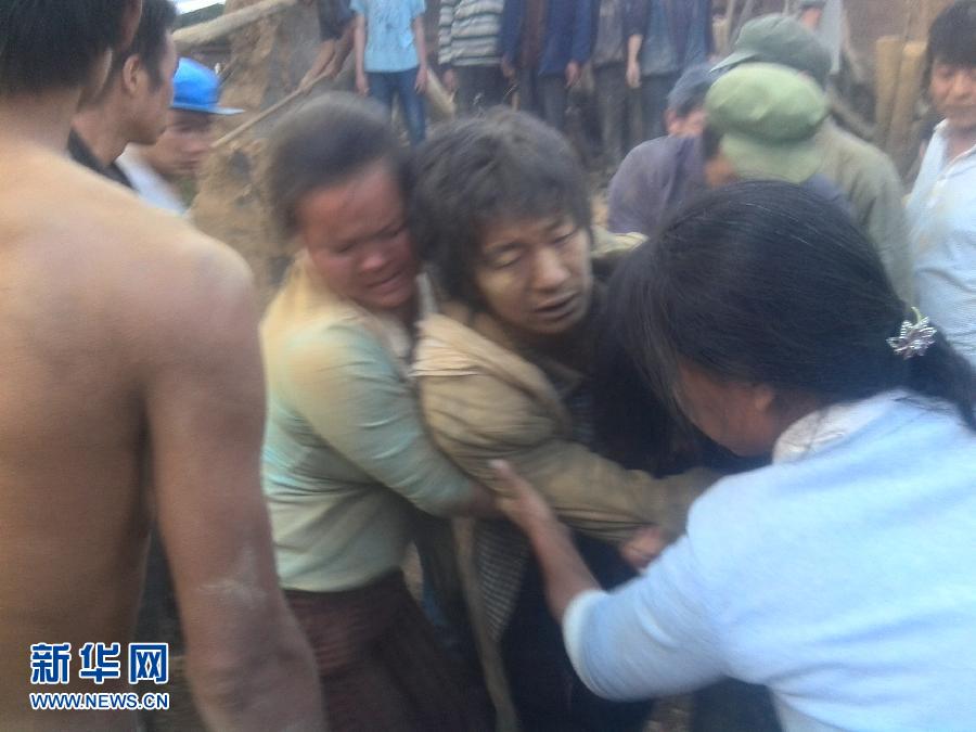 这是8月3日拍摄的云南昭通地震后的现场情况(手机拍摄)。据国家地震台网测定,北京时间2014年8月3日16时30分,在云南省昭通市鲁甸县(北纬27.1度,东经103.3度)发生6.5级地震,震源深度约12公里。新华社发(云南消防提供)