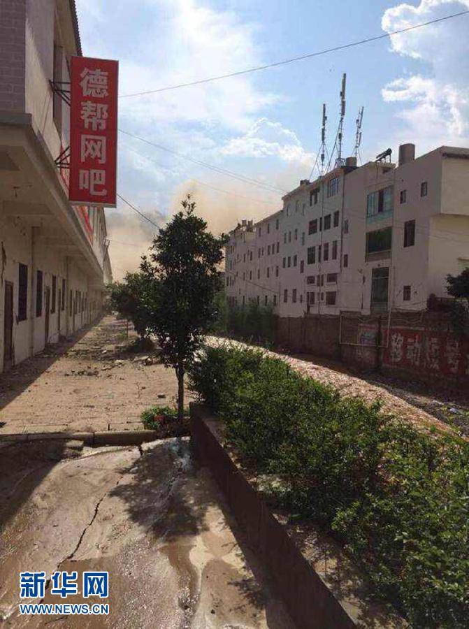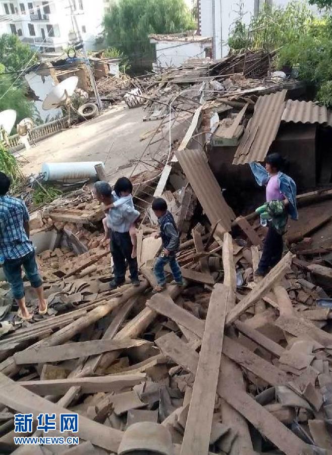 这是8月3日拍摄的云南昭通地震后的现场情况(手机拍摄)。据国家地震台网测定,北京时间2014年8月3日16时30分,在云南省昭通市鲁甸县(北纬27.1度,东经103.3度)发生6.5级地震,震源深度约12公里。新华社发(王星皓摄)