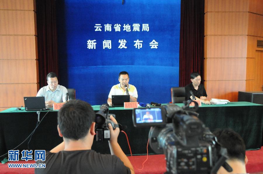8月3日,云南省地震局在昆明紧急召开新闻发布会。民政部网站8月3日发布消息显示,据云南省民政厅报告,截至19时50分初步统计,云南鲁甸地震已造成鲁甸县和巧家县33人死亡,其中鲁甸县7人,巧家县26人;2人失踪;79人受伤,其中7人重伤。 具体灾情正在进一步核查统计中。 新华社记者浦超摄